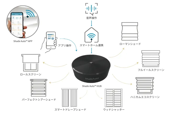 - ShadeAuto™ HUBは有料オプションです / ShadeAuto™ は無料のアプリです