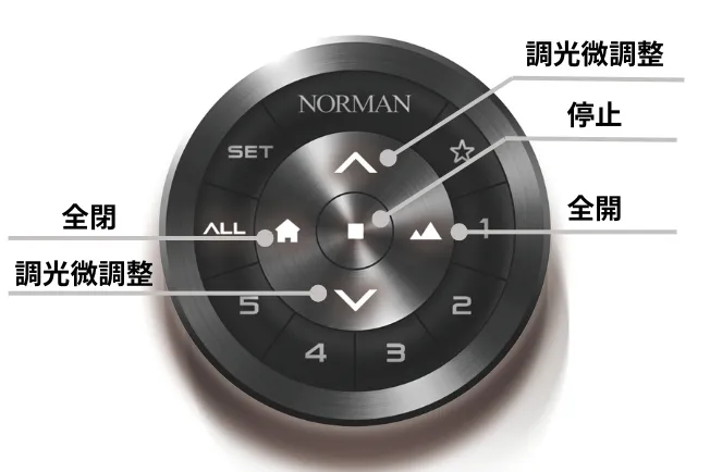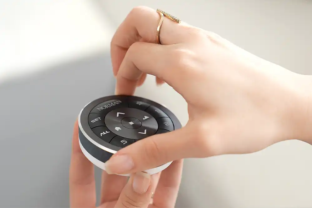 SmartDial™なら、ひとつで全てのNORMAN®電動製品を操作可能。 複数のリモコンを置く必要がなく、空間がすっきりと整います。 製品ごとに最適化されたボタン配置で、どの部屋でも同じ感覚で快適にコントロールできます。