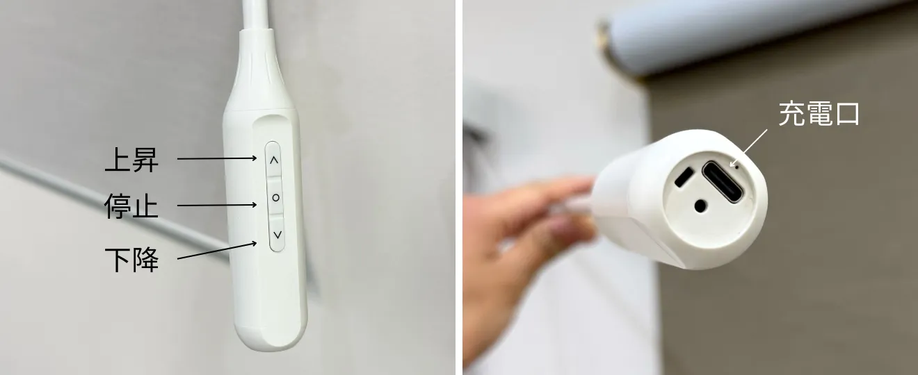 先端に充電口があります。一般的な窓まわり製品の充電口は上部にあるのに比べ、手元で作業でき安全です。