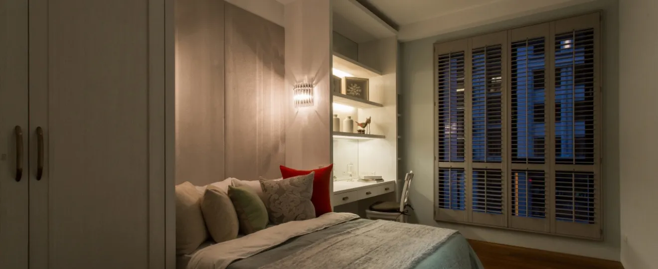 ・エクストラホワイトのカラーで空間が引き締まり、寝室がすっきり広く感じられる