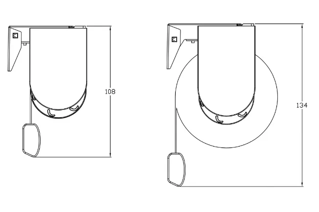 巻き上げ時の最小寸法108mm~最大寸法134mm。