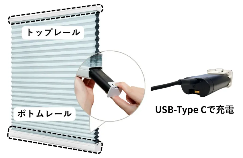 スクリーン本体と給電用デバイスにバッテリーを内蔵することで、どんな場所や窓でもスマートに電動操作が可能です。居住後の吊替えも容易になりました。